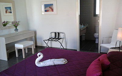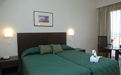 The 76 elegantly decorated bedrooms are located either in the main building or in the garden wings. Offered for twin or single occupancy, they all have a bathroom, individually controlled air-conditioning and heating, flat-screen satellite TV, mini-bar, direct-dial telephone, a safe-deposit box, hairdryer and a balcony or veranda offering beautiful sea views or equally attractive views of the garden and the Paphos Mountains. A fold-up extra bed or baby cot can be added. Also available is a superb sea-view Suite, Family Rooms (land-view, sleeping up to 4), a room for the disabled (land-view) and rooms with connecting doors (sea-view).